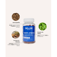 Anti-Stress gummies combina ashwagandha con extracto de Melisa y Ginseng para regular los niveles de cortisol y reducir el estrés y la ansiedad.